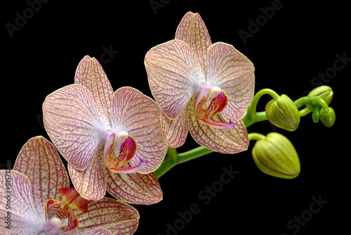 © CUKMEN, Obraz premium Kwitnący storczyk na czarnym tle