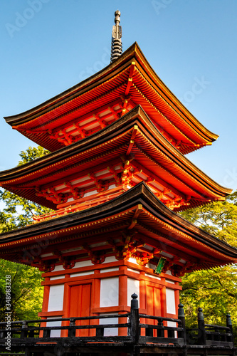 Naklejka premium Kyoto, Japan - 04 May, 2019. The Kiyomizu-dera Shrine is a hugely popular location in Kyoto. National and international tourists flock here all year long.