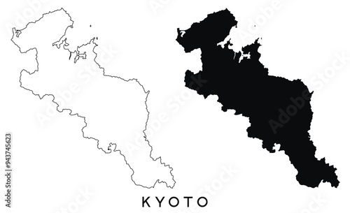 Fototapeta premium Kyoto map outline and black silhouette vector