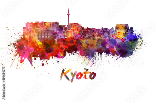 © Paulrommer, Fototapeta premium Kyoto skyline in watercolor