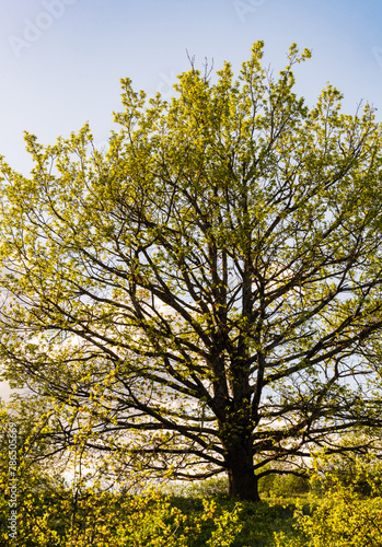 Fototapeta premium L'éclosion des feuilles : un magnifique chêne pubescent dans son...