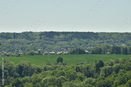 Fototapeta premium L'horizon entre forêts ,villages et champs vu depuis la falaise de la Roche...