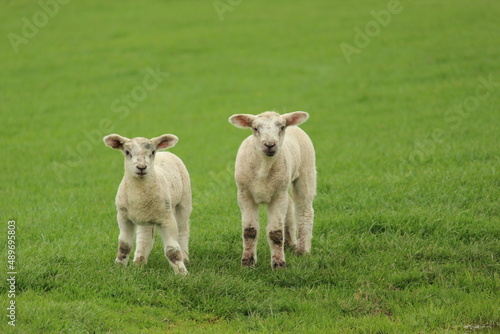 © Julien Huber, Obraz premium 2 Lämmer auf dem Feld