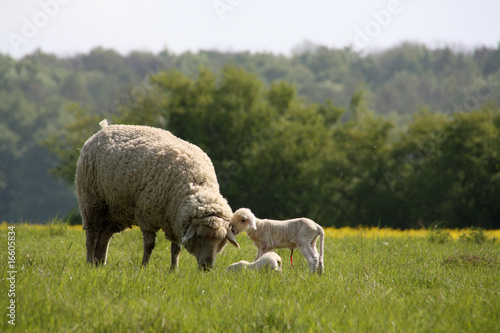 © Antje Lindert-Rottke, Obraz premium Lämmer mit ihrer Mutter