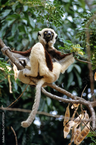© JAG IMAGES, Naklejka premium Lémurien, Propithéque de Vérreaux, Propithecus verreauxi, Madagascar