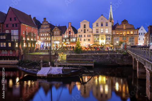 © Carl-Jürgen Bautsch, Naklejka premium Lüneburg - Stintmarkt am Abend im Winter