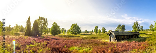 Fototapeta premium Lüneburger Heide, Heide Blütezeit, Panorama