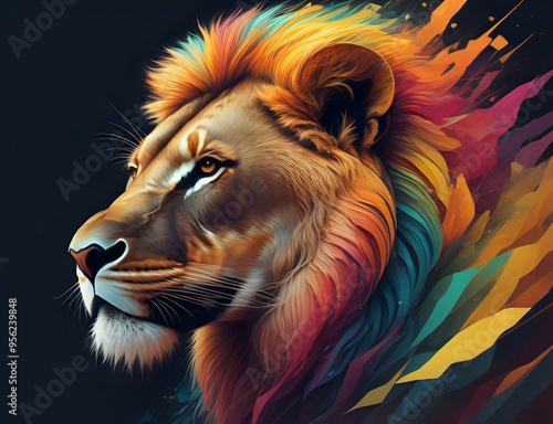 © DeMitoBella, Fototapeta premium Löwe mit bunter Mähne