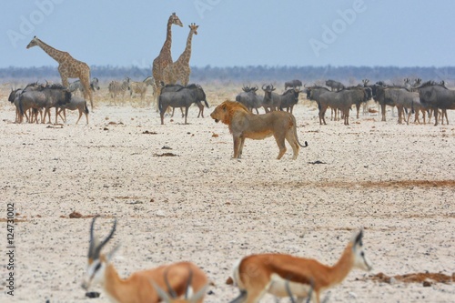 Obraz premium Löwe (panthera leo) auf Beutezug im Etosha Nationalpark