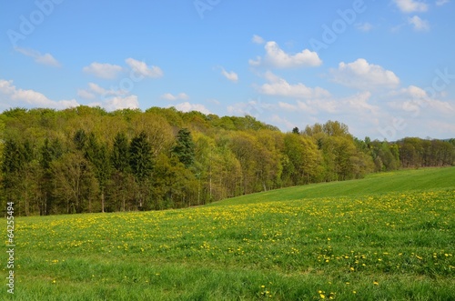 © alisseja, Fototapeta premium Löwenzahnwiese in Hügellandschaft