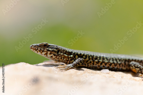 Naklejka premium Lézard des murailles Lacerta muralis prenant le soleil sur une pierre