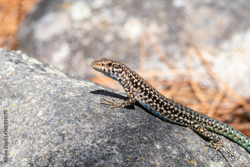 © Colombe Delons, Fototapeta premium Lézard tyrrhénien (Podarcis tiliguerta) sur pierre au soleil en Corse