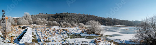 Fototapeta premium la butte aux marais, espace naturel sensible, en hiver sous la neige,Puy de...