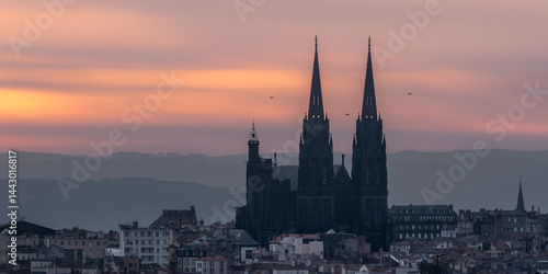 © Alexandre, Naklejka premium La Cathédrale Notre-Dame de Clermont-Ferrand au coucher de soleil en Auvergne