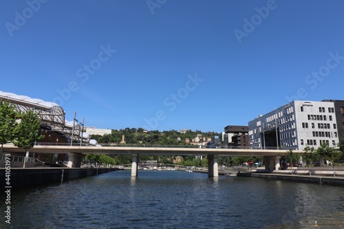 Obraz premium La darse, grand bassin artificiel dans le quartier d'affaires de Lyon...