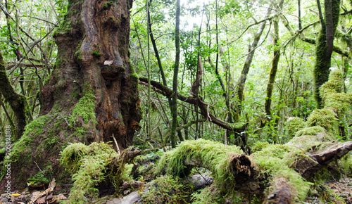 © doris oberfrank-list, Fototapeta premium La Gomera: Fruchtbarer, grüner, feuchter Nebelwald mit Bäumen, Farnen und Moos :)