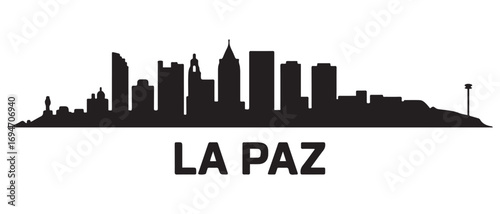 © Nargis, Obraz premium La Paz skyline silhouette. Black La Paz city design. Vector black silhouette. with white background