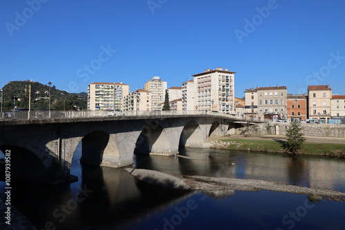 Naklejka premium La rivière le Gardon dans la ville, ville d'Alès, département du Gard, France