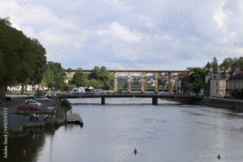 Naklejka premium La rivière Mayenne et ses rives, ville de Laval, département de la Mayenne,...
