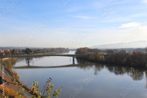 Fototapeta premium LA SAONE - RIVIERE - VUE DEPUIS TREVOUX - AIN