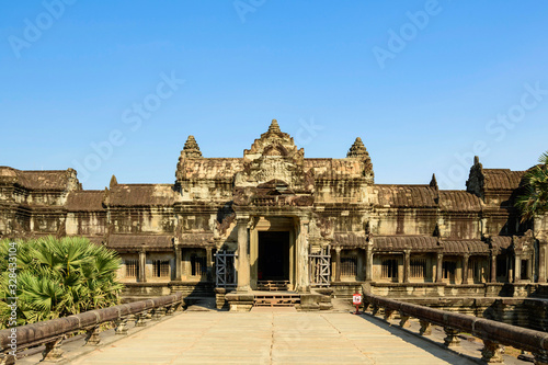 © Florent, Fototapeta premium La sortie du Pavillon d'entrée vue de la Voie Royale dans le domaine des temples de Angkor, au Cambodge