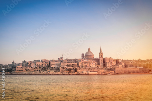 © Mirko Vitali, Fototapeta premium La Valletta at sunset from the sea - Capital of Malta
