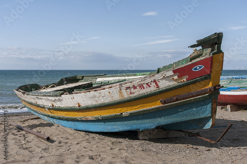 © Antonio ciero, Fototapeta premium La vieja barca a la orilla del mar