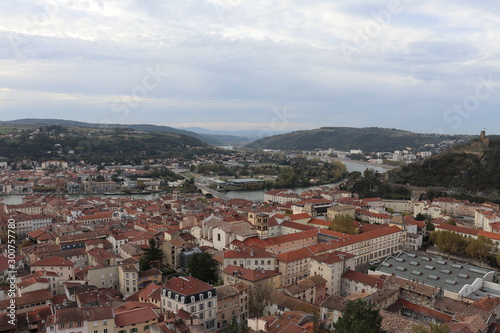 © ERIC, Obraz premium La ville de Vienne - Vue générale de la ville et de ses toîts depuis le Belvédère de Pipet - Département de l'isère - France