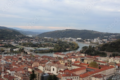 © ERIC, Obraz premium La ville de Vienne - Vue générale de la ville et de ses toîts depuis le Belvédère de Pipet - Département de l'isère - France