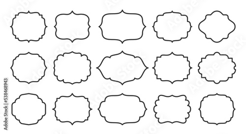 Obraz premium Label set, empty frame for card, certificate, menu. Line style different shape sticker template for jar, container, bottle, pack. Contour blank for text about product, sale info. Outline retro border