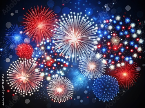 © Four888, Naklejka premium Labor Day Celebration: Patriotic Polka Dot Fireworks Burst