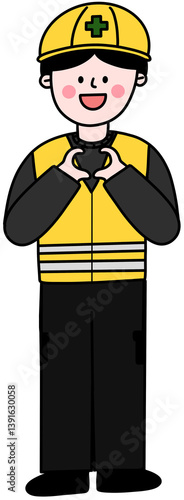 Naklejka premium 근로자의 날 안전관리사 캐릭터 라인드로잉 일러스트(labor day job character line drawing illust)