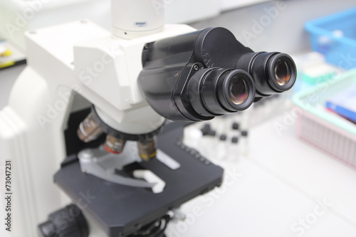© somkanokwan, Naklejka premium Laboratory Microscope. Scientific research background.