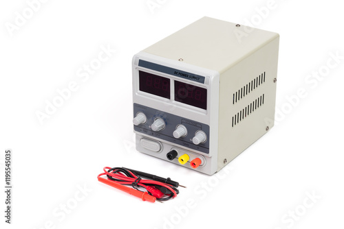 Fototapeta premium Laboratory Power Supply Unit with Cables in Studio Setting