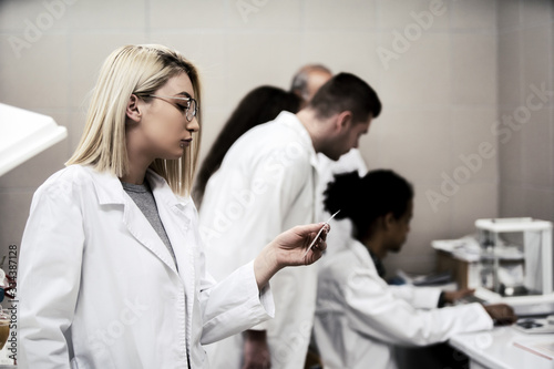 Fototapeta premium Laboratory scientist working at lab with test tube