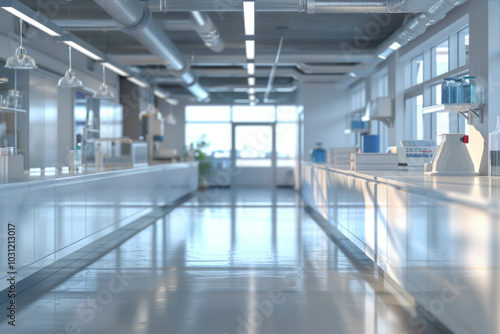 © wiparat, Obraz premium Laboratory workplace interior with blurred background