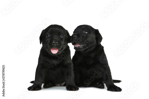 © 5second, Fototapeta premium Labrador black puppies isolated on white background