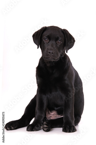 Fototapeta premium Labrador puppy sitting isolated on white background