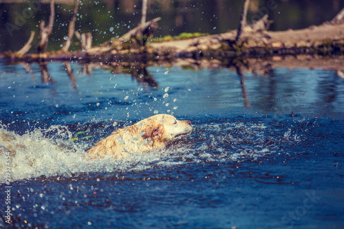 © vvvita, Obraz premium Labrador Retriever Dog Floats in the River