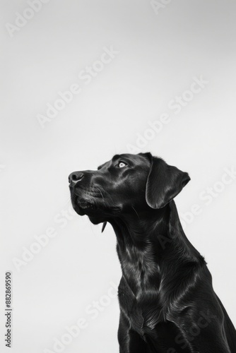 Fototapeta premium Labrador Retriever stands alert, plain white background.