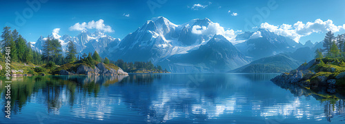 © nagulan, Obraz premium Lac Blanc Panorama with Mont Blanc