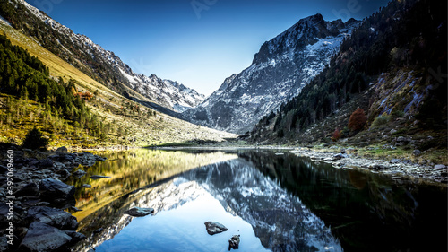 © Fourcade.N, Fototapeta premium lac de suyen bleu jaune