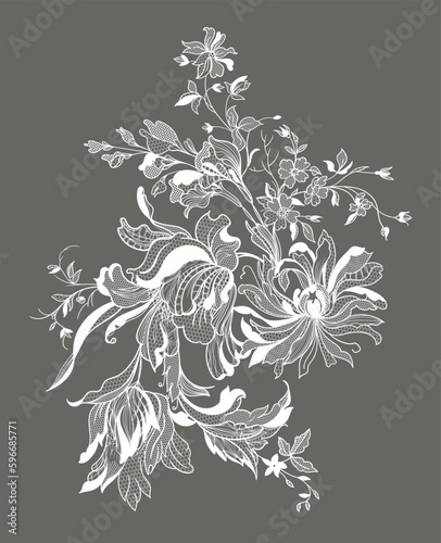 Fototapeta premium lace flowers and foliage. Vector illustration, bouquet.