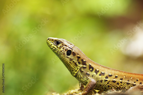 © taviphoto, Naklejka premium Lacerta agilis macro portrait