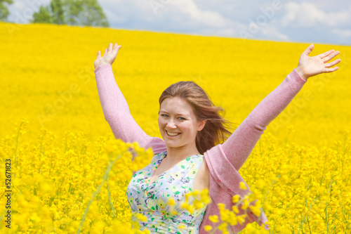 © karepa, Naklejka premium lachende frau im raps feld