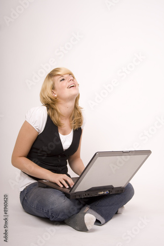 © Angie Lingnau, Naklejka premium lachende Frau mit Laptop