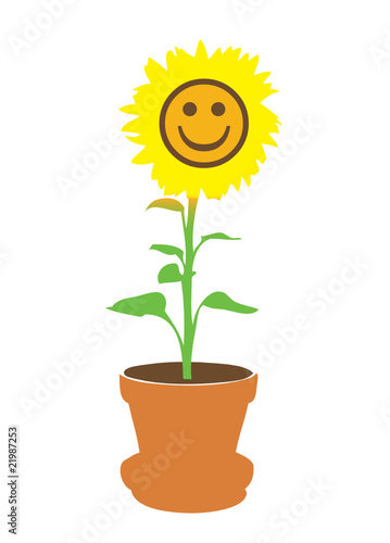 Obraz premium Lachende Sonnenblume im Topf