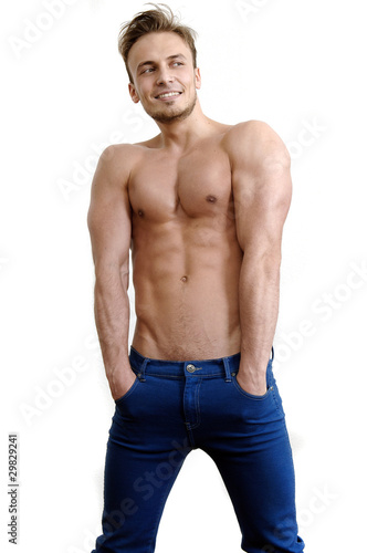 © zamphotography, Fototapeta premium Lachender Mann mit Händen in Hosentasche