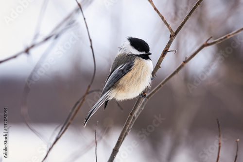 Fototapeta premium lack-capped Chickadee (Mésange à tête noire - Poecile atricapillus) in Quebec winter