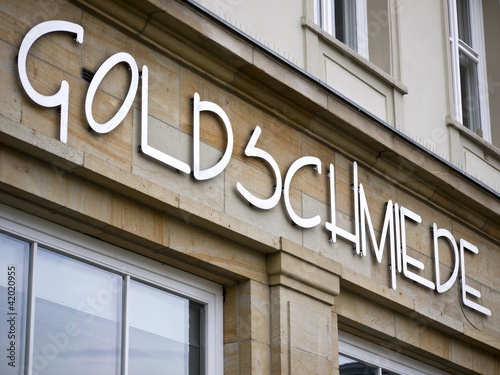 © Heike Jestram, Obraz premium Ladenschild-Goldschmiede-weiss